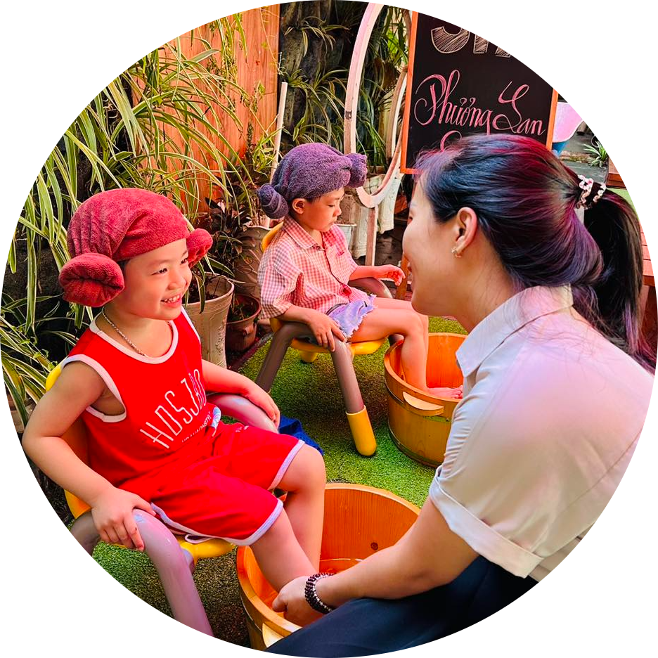 Ngoài những giáo dục cơ bản mà các con được học, chúng tôi còn hướng đến một môi trường " Tôn trọng sự phát triển tự nhiên". Chúng tôi không những trau chuốt kỹ năng giảng dạy mà còn luôn đổi mới tư duy rèn luyện cho trẻ về: thể chất, cảm quan, ngôn ngữ, văn hóa, thực hành cuộc sống.....